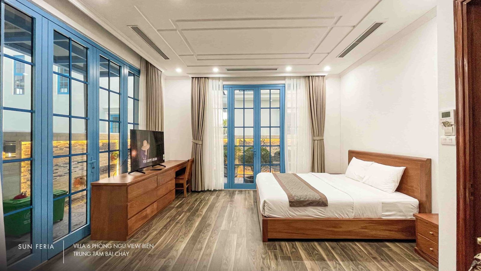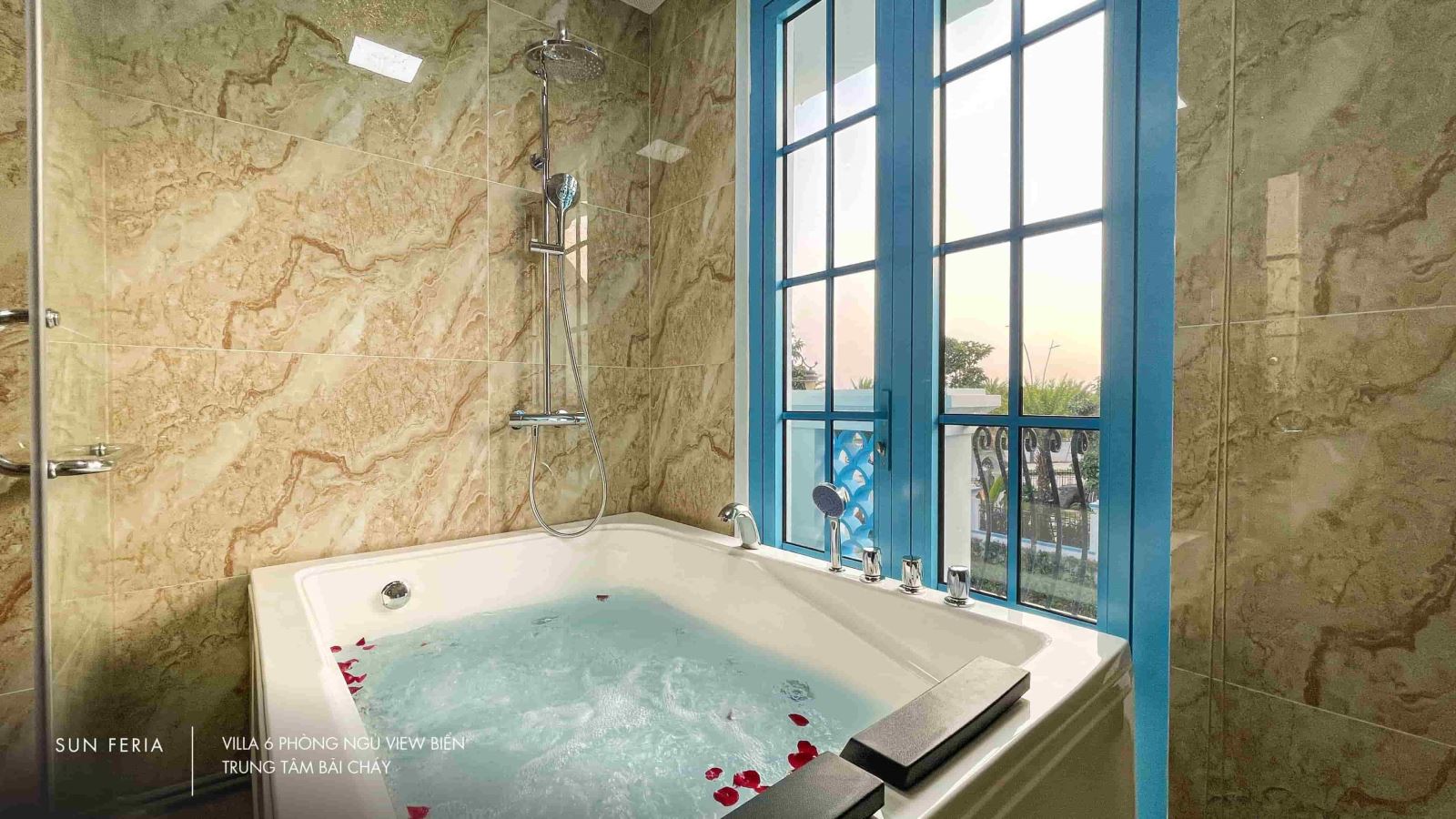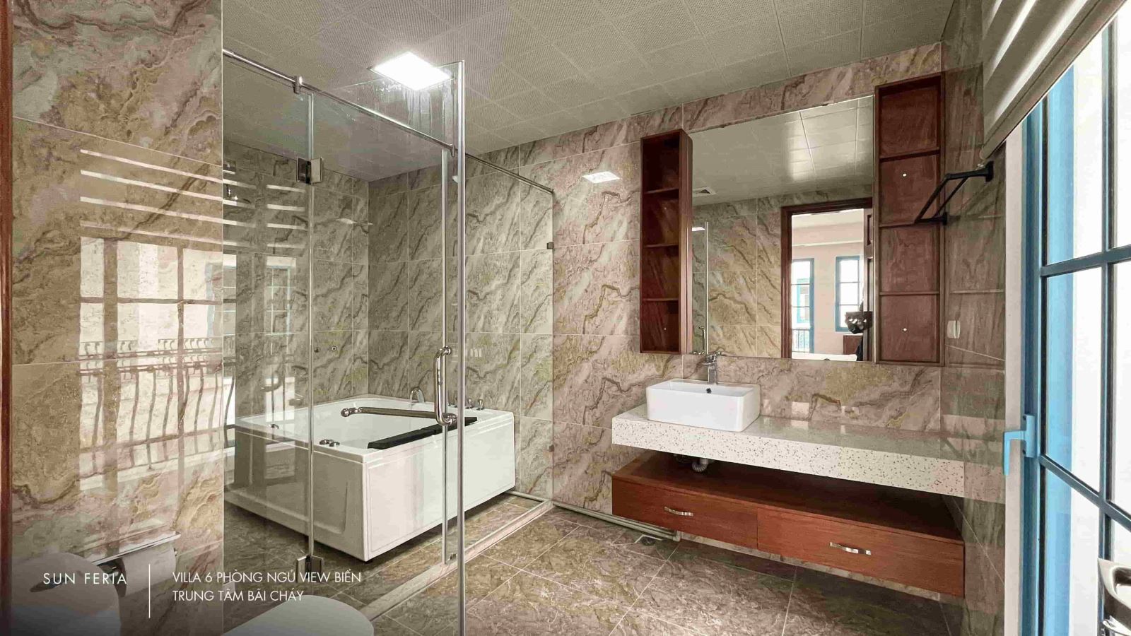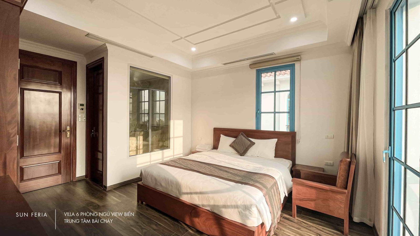 Biệt thự có 06 phòng ngủ đầy đủ tiện nghi (TV, WC khép kín, Wifi, máy sấy, đồ vệ sinh cá nhân …) với kích thước gường: 06 gường 1,8m, 07 phòng tắm đầy đủ tiện nghi, 2 bồn sục jacuzzi